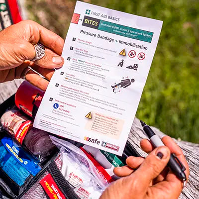 - 1 x Snake bite instruction card, includes bite record register and CPR instruction card