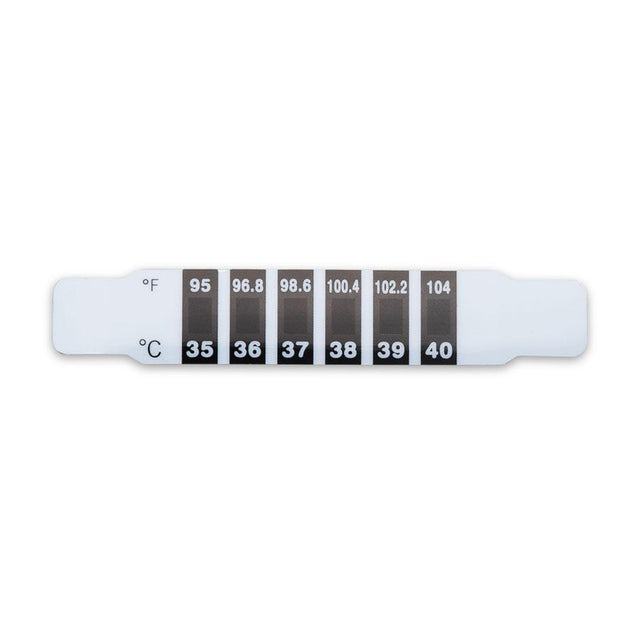 | A fever scan strip suitable for placing on a person's forehead, 9cm x 1.5cm |