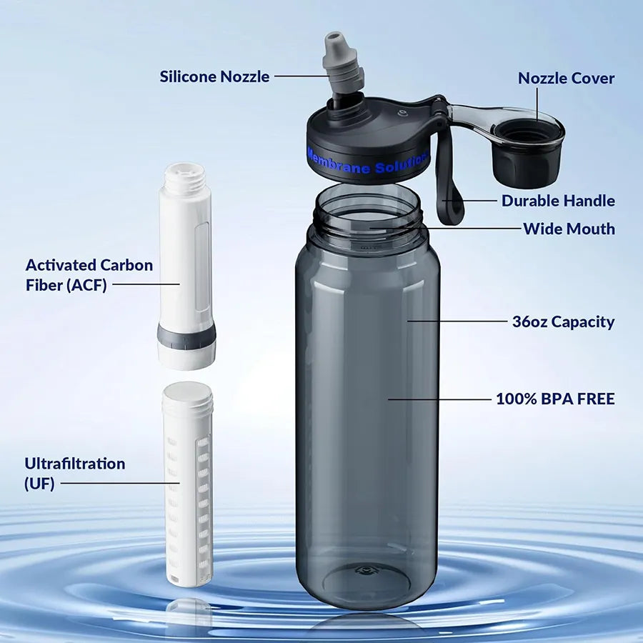 - Generous Capacity: With a 36oz (approximately 1.06 litres) capacity, it's perfect for all-day hydration during travel, hiking, camping, or emergency situations.